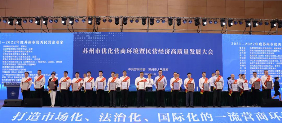 7月21日,蘇州市優(yōu)化營商環(huán)境暨民營經(jīng)濟高質(zhì)量發(fā)展大會對30名“2021—2022年度蘇州市優(yōu)秀民營企業(yè)家”進行了表彰,江蘇宏寶集團董事長朱劍峰獲得殊榮。