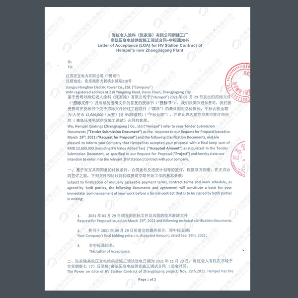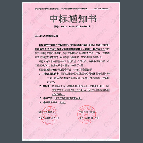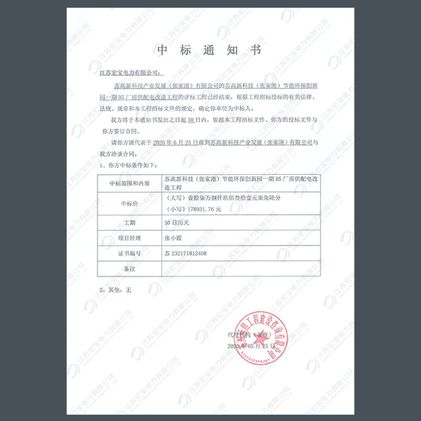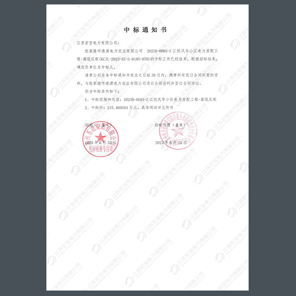 高壓柜中標(biāo)通知書