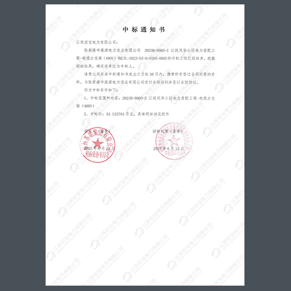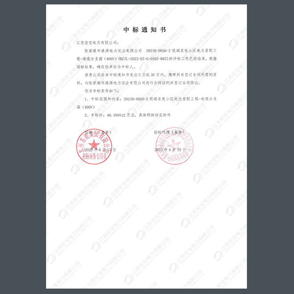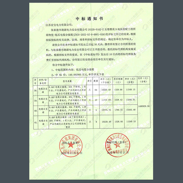 400V電纜分支箱中標(biāo)通知書